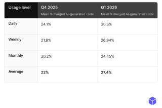 AI-generated merged code holds steady at ~30%