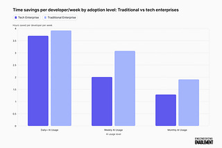 Data from more than 50,000 developers suggests that traditional enterprises are beating big tech on AI adoption and time savings.