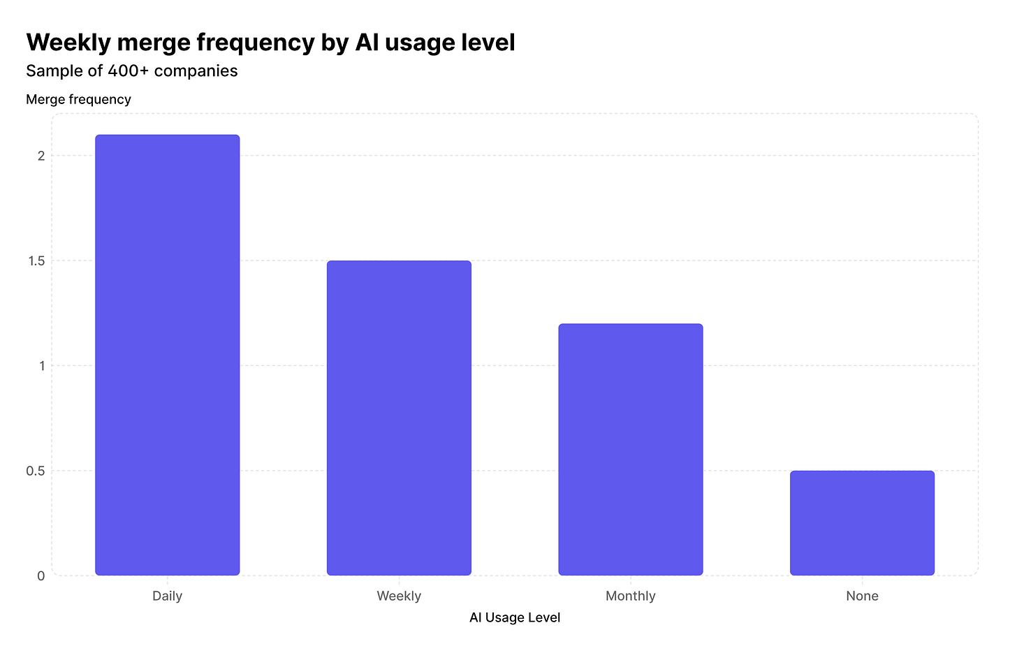 While time savings alone doesn’t tell a full story—in fact, this shift should come with heightened attention to quality, maintainability, and security—it is interesting to see this change in work impact among junior engineers.