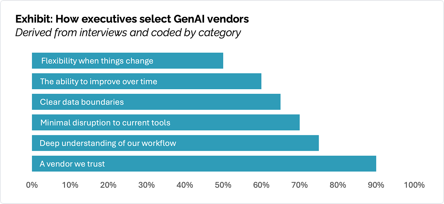 Additionally, successful buyers treated AI vendors less like SaaS providers and more like service partners. They demanded deep customization, evaluated tools based on measurable outcomes, and expected systems to integrate into existing workflows with minimal disruption.