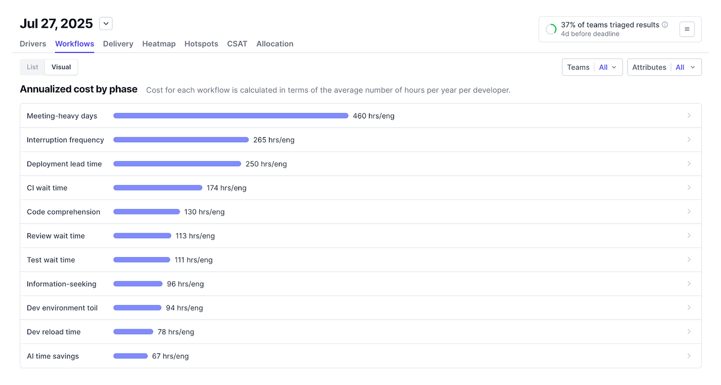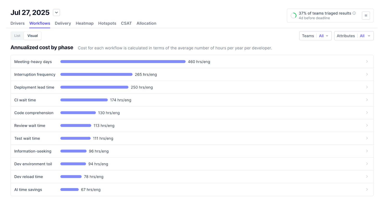 1. Across the board, the acceleration gains from AI are still outweighed by some of the inefficiencies that exist across the SDLC. All of the traditional issues, such as excessive meetings, interruptions, and code quality, still hinder us today and remain problems we need to solve.